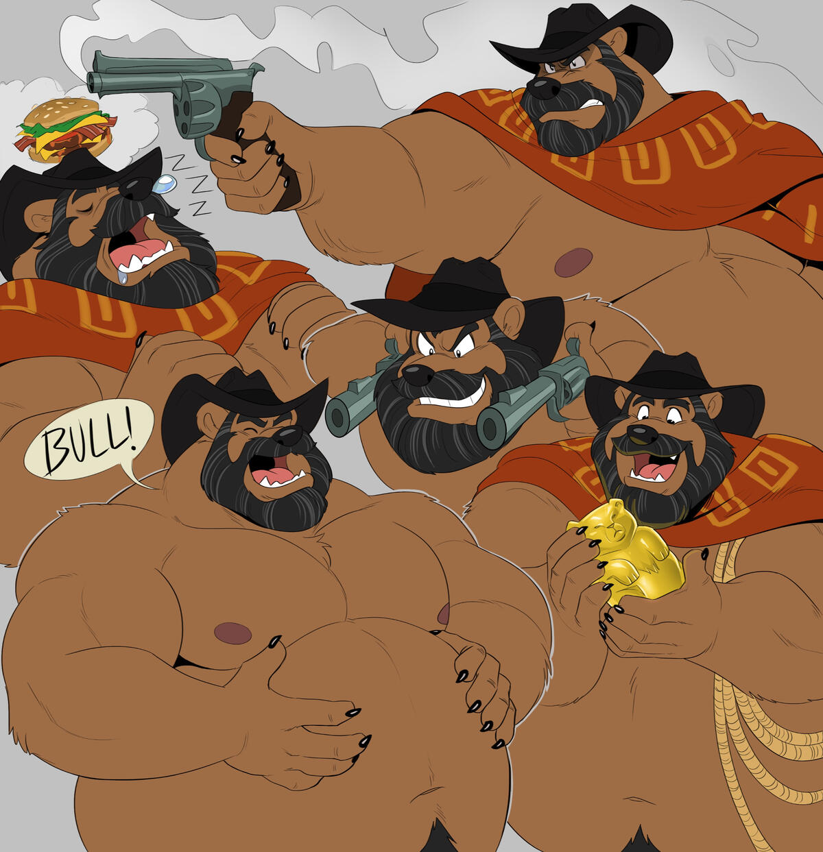 Scruffy was a bear with a love of adventure and a hunger for knowledge. He was an archaeologist by trade, and he spent his days digging up ancient artifacts and uncovering the secrets of the past. But when he wasn't busy in the field, Scruffy loved nothing more than to put on his cowboy hat and boots and hit the open range.Scruffy was a natural-born cowboy, and he was an expert with a gun. He could ride a horse like nobody's business and rope a steer with the best of them. But despite his love of the Wild West, Scruffy never forgot his true passion: archaeology.So when a chance came for him to combine his two interests on a dig in the desert, Scruffy jumped at the opportunity. He packed his bags and headed out into the hot, dry desert, ready to dig up some ancient artifacts and have some good old-fashioned cowboy fun.As he rode his horse through the desert, Scruffy couldn't help but feel a sense of excitement. He loved the feeling of the wind in his fur and the hot sun on his face. And when he finally reached the dig site, he was ready to roll up his sleeves and get to work.For weeks, Scruffy toiled in the hot sun, digging up artifacts and uncovering the secrets of the past. And when the work was done, he would retire to his campsite, cook up a big juicy cheeseburger, and take a nice, long nap in his tent.To Scruffy, there was nothing better than the combination of adventure, knowledge, and a good cheeseburger. And even though he was just a plain old papa bear, Scruffy knew that he had the best job in the world.Art by @thebluebear27